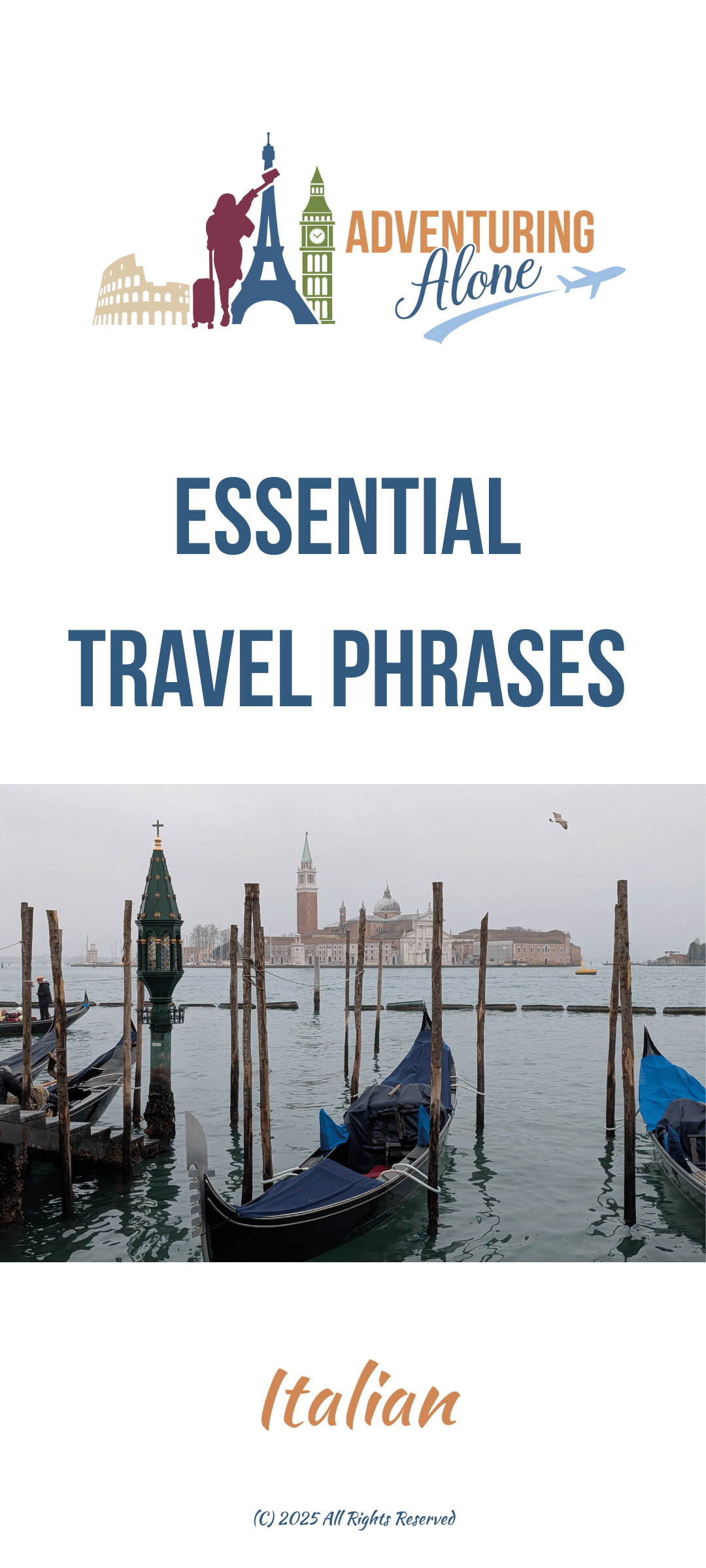 Travel with confidence using my mobile-friendly Essential Travel Phrases guide—covering the basics you'll need for Italy. Each guide includes 17 must-know phrases with English translations, phonetic pronunciation, and practical tips for use. Perfect for travelers who want to feel prepared, connected, and at ease abroad.